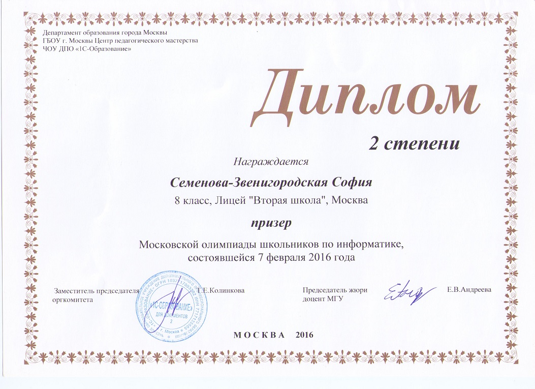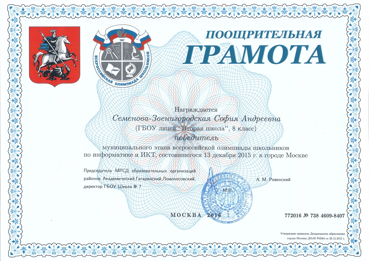 Муниципальный этап всеросийской олимпиады школьников по информатике и ИКТ. Стала победителем.